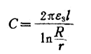 上公式种R和r分别表示为绝缘覆盖层外半径和外电极的内半径。