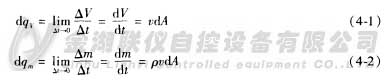 流体在单位时间内通过管道某一截面的数量称为流体的瞬时流量,简称流量。按计量流体数量方法的不同,流量可分为质量流量Qm和体积流量Qv,。由于很堆保证流体在流动过程中均匀流动,严格地说,只能认为在某一截面的某一微小单元面积dA上流动是均匀的,即有: