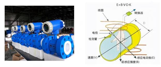 电磁流量计工作测量原理:根据法拉第电磁感应定律,当一导体在磁场中运动切割磁力线时,在导体的两端即产生感生电势e,其方向由右手定则确定,其大小与磁场的磁感应强度B,导体在磁场内的长度L及导体的运动速度u成正比,如果B,L,u三者互相垂直,