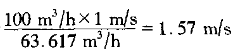 用于输送淡碱的泵有2台,量程都是100m3/h,杨程50m,采用单泵间断方式输送淡碱。流量计的量程设定为160m3/h。从流率表上查出口径150mm,平均流速v=1m/s时的流量为63.617m3/h。可计算出满量程流速为