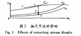 数。汽轮机的做功为可逆绝热膨胀过程(即等墒过程),水燕汽在节流前由点l经可逆绝热膨胀至抽汽压力P2时,可利用的饮降为人一It, .而经节流后的水燕汽,同样经可逆绝热膨胀至压力P2时,可利用的幼降为鲜一呵.显然‘一‘:》^.’一h2,节流以后燕汽可作出功减少。
